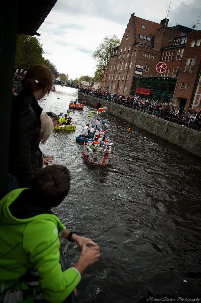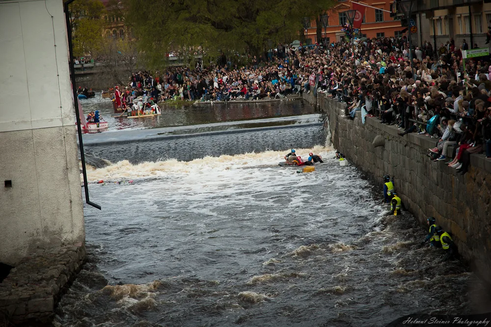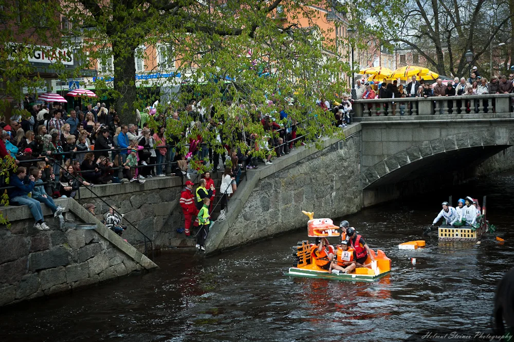 What’s happening during Valborg? Well, in the morning people sit next to the river drinking champagne and eating strawberries. Every year, there’s a boat race. The funny thing about it: Students build their own boats (very creative ones) and there are two sites with rapids where nearly every boat crashes. ;) After the boat race the masses gather at a big park next to the university – picnic, drinking, music – in short: a hell of a party! And after the party, you guess it, there’s more party… But I didn’t take any photos of it because I had to secure my camera.