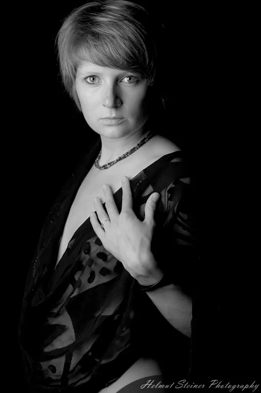 At first we did some shots in my studio/flat with black background and 2 lights with softboxes. Steffi was sitting on the floor and laughing her ass off in the meanwhile. („Die Haare, die Haare!!!“) ;)