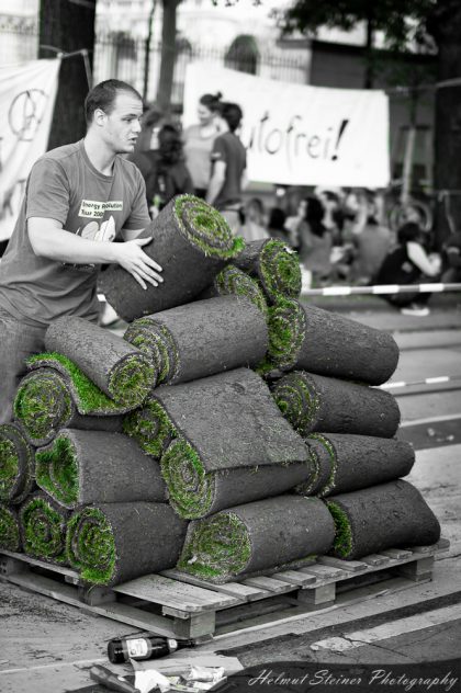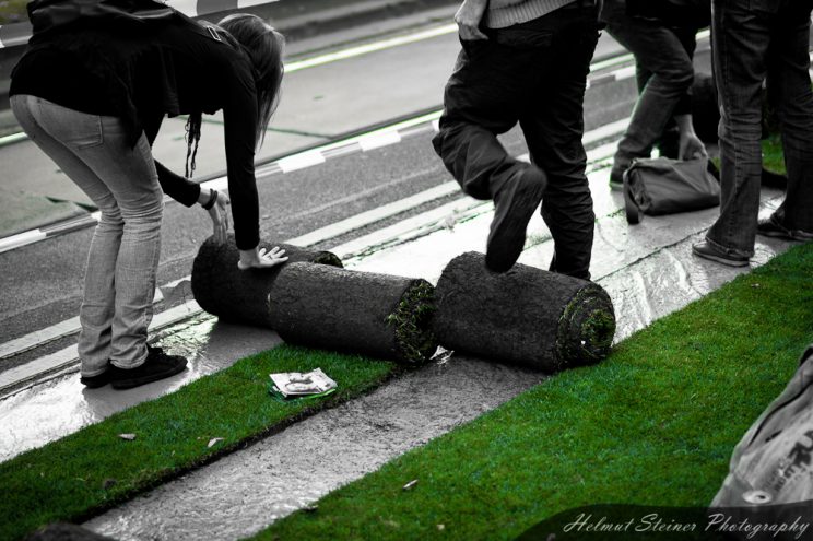 Yesterday was a car-free day at the Burgring in Vienna. So grass was rolled out to make a picnic in the middle of the road. I met there with some friends after work and enjoyed the nice gossamer day. :)