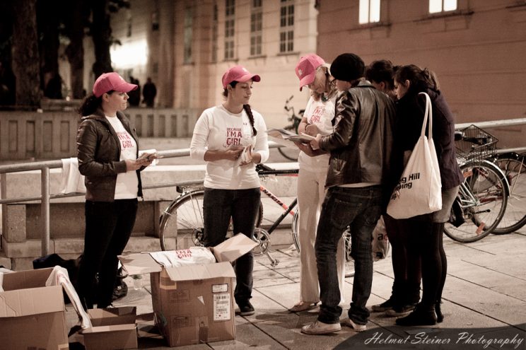 Inside the MQ there was a group of girls working for Plan giving away t-shirts for the „Because I am a Girl“ campaign. (Yesterday was international girls day.) As I support anti-discrimination I kindly asked and got a (girlie) shirt. :D
