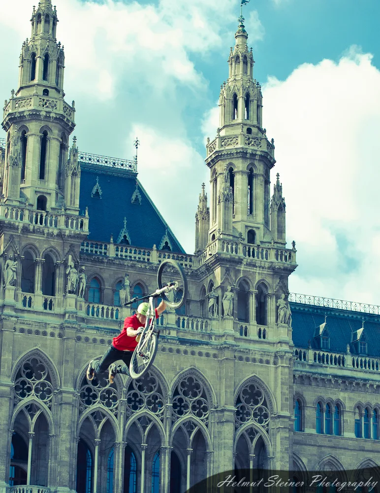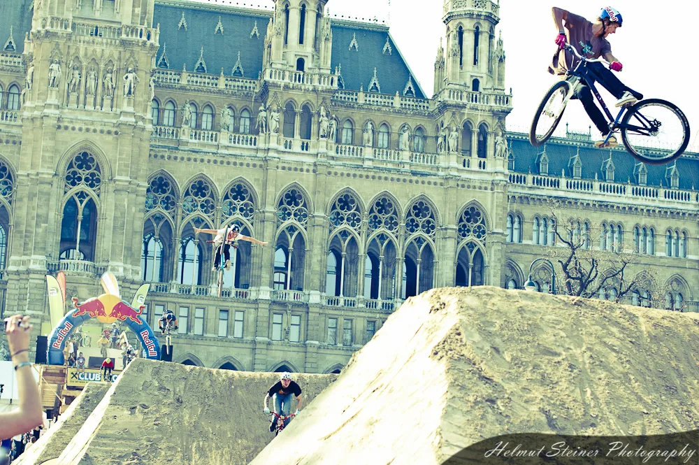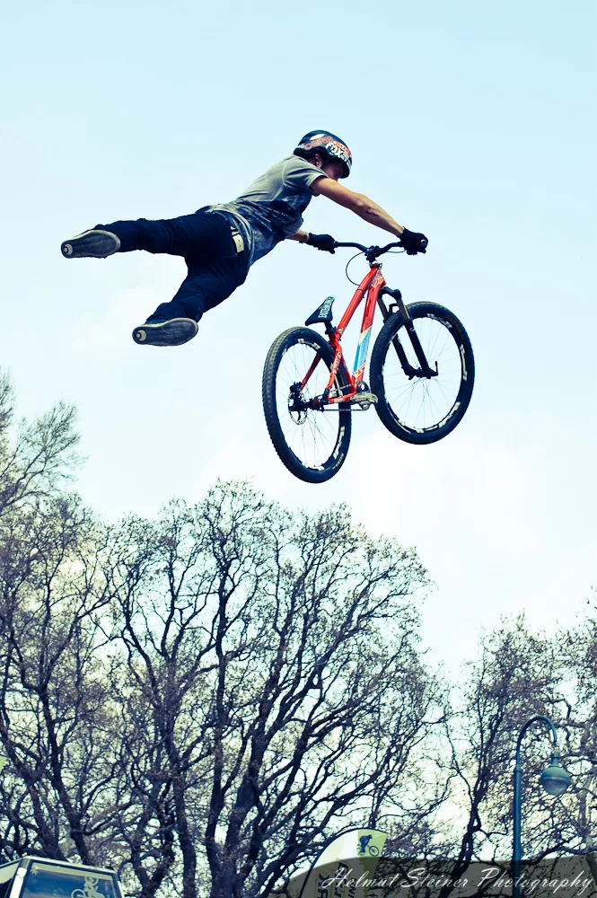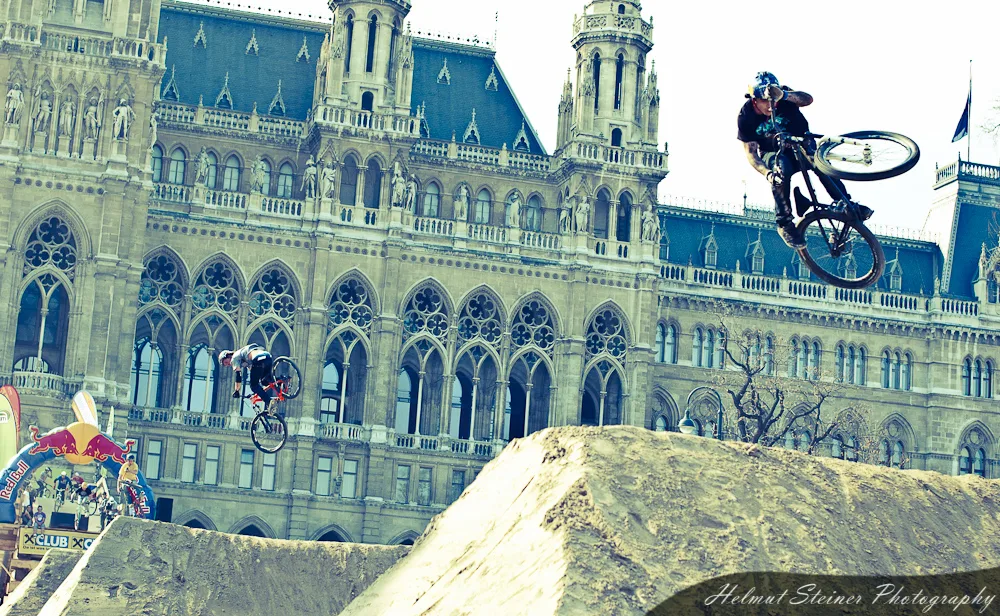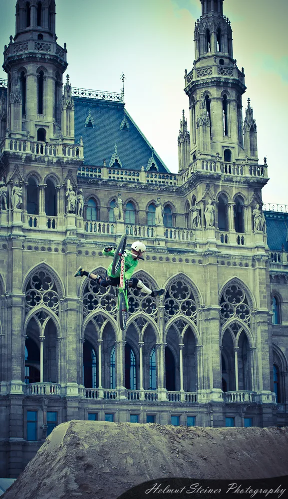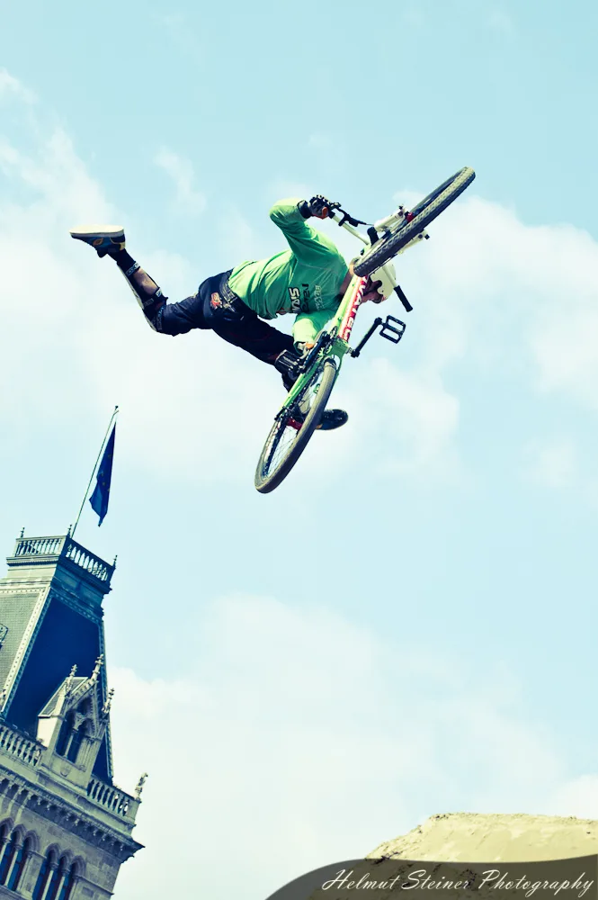 Last weekend was Austria’s biggest bike event, the ARGUS Bike Festival, at the Townhall Square in Vienna. Part of it was the Vienna Air King „an international dirt jump competition, which is held every April and functions as the annual bike season kick off event in Europe“.