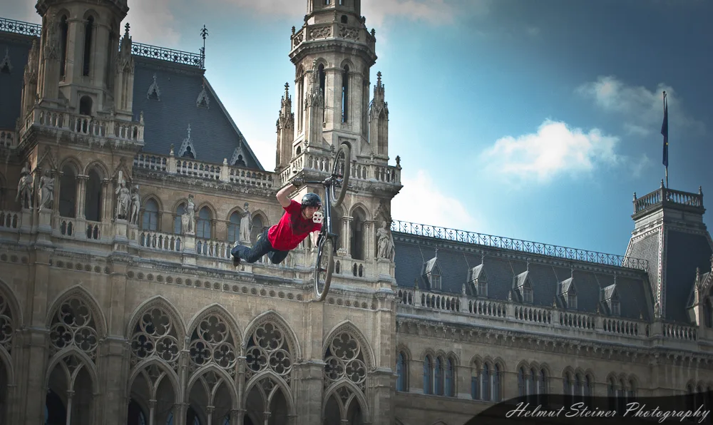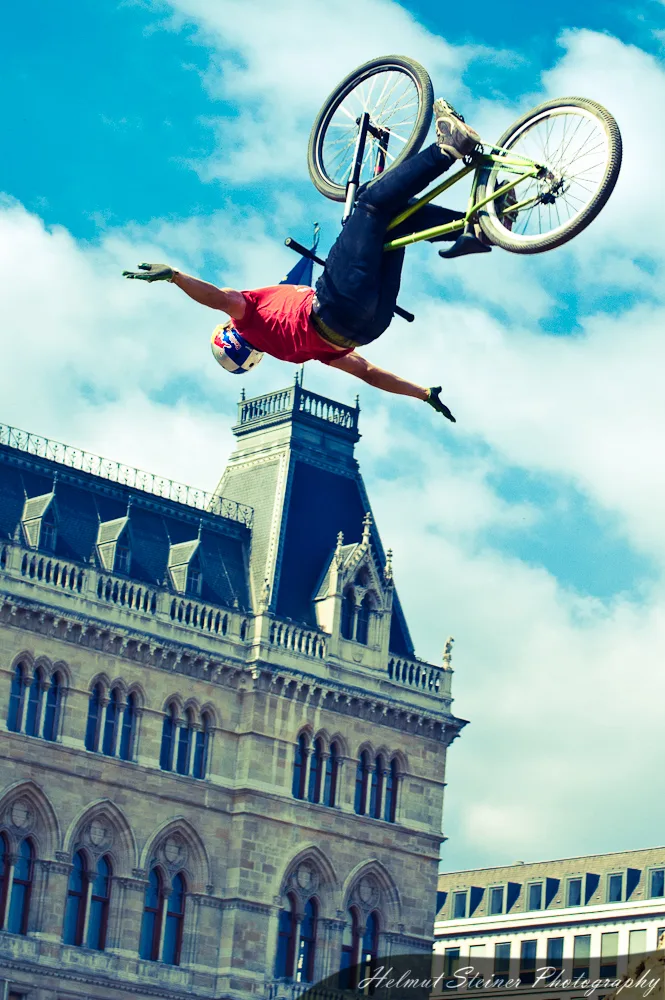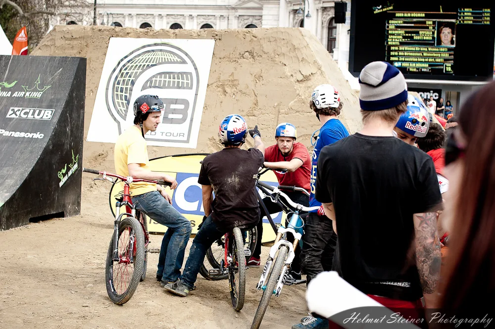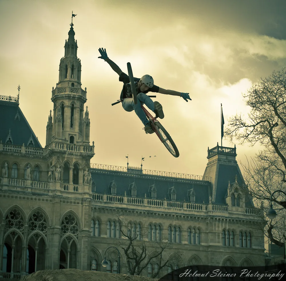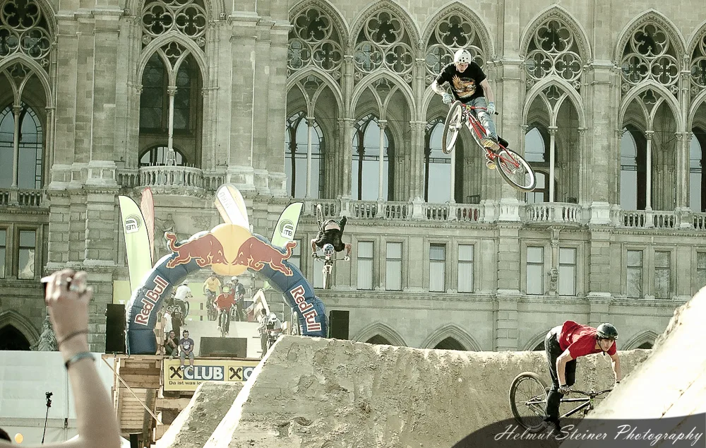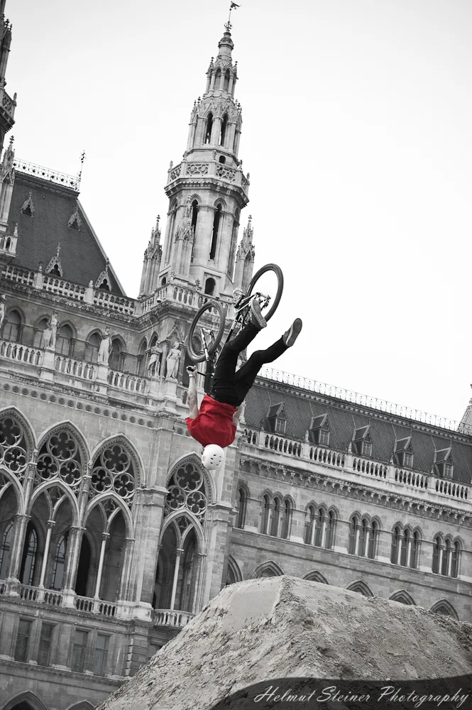 Last weekend was Austria’s biggest bike event, the ARGUS Bike Festival, at the Townhall Square in Vienna. Part of it was the Vienna Air King „an international dirt jump competition, which is held every April and functions as the annual bike season kick off event in Europe“.