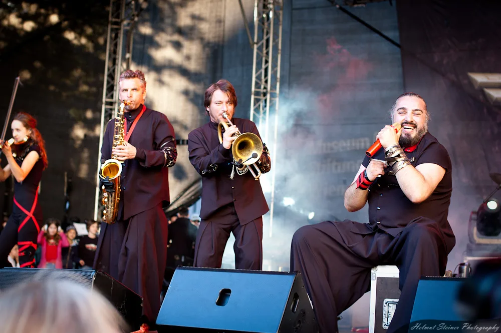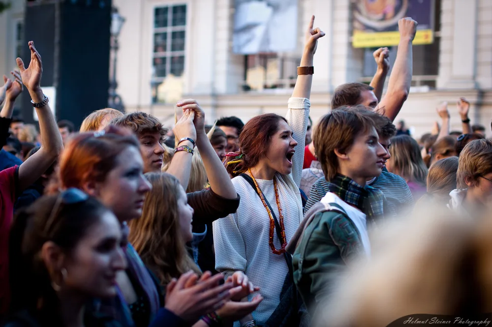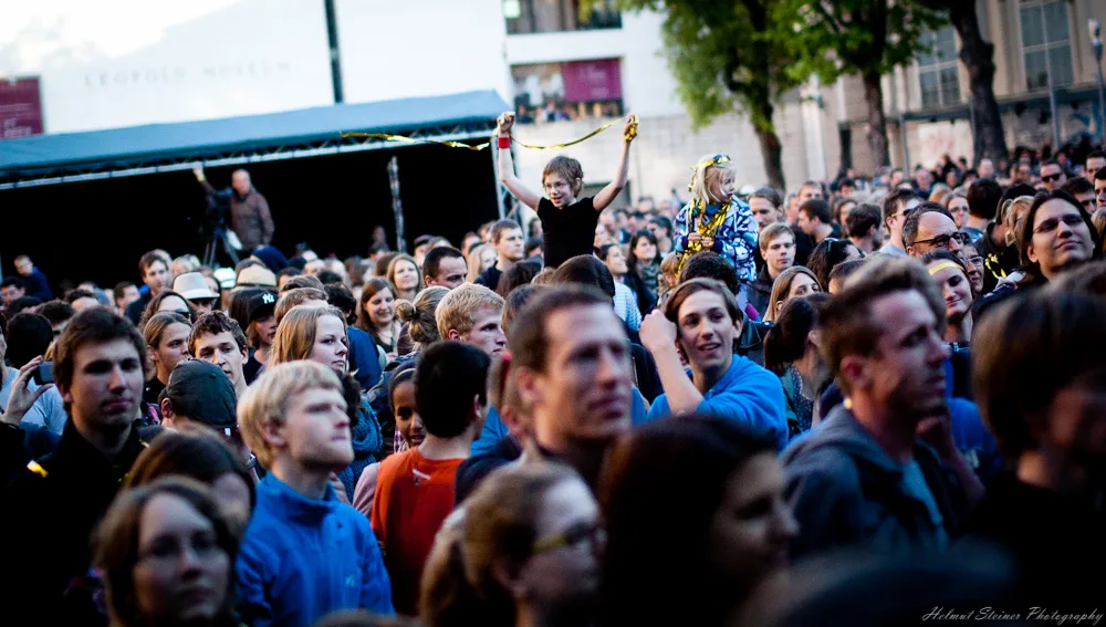 At the beginning of May there was the 10 year anniversary of the Museumsquartier with a concert of Russkaja. As one free concert isn’t enough for one day in Vienna also the FM4 Popfest took place at the same time in front of the St. Charles‘ Church.