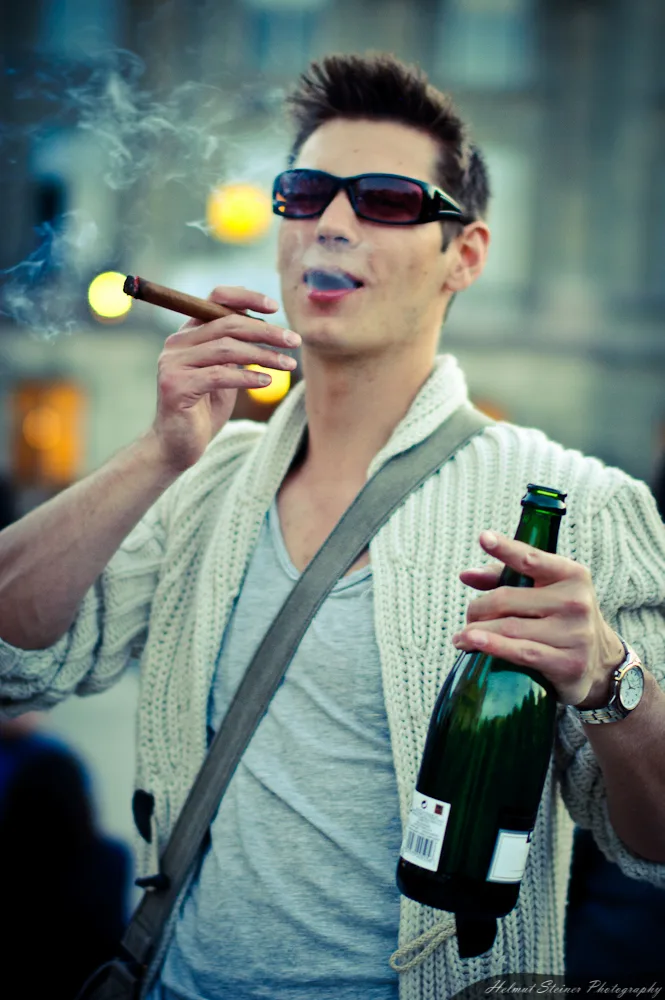 Sehr schön dekadent das Bild mit Zigarre und Sektflasche :)