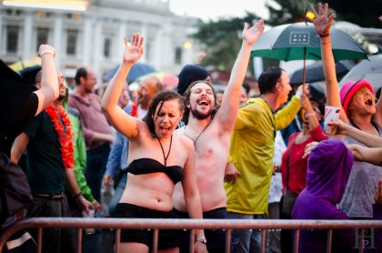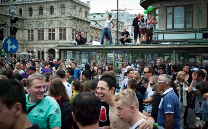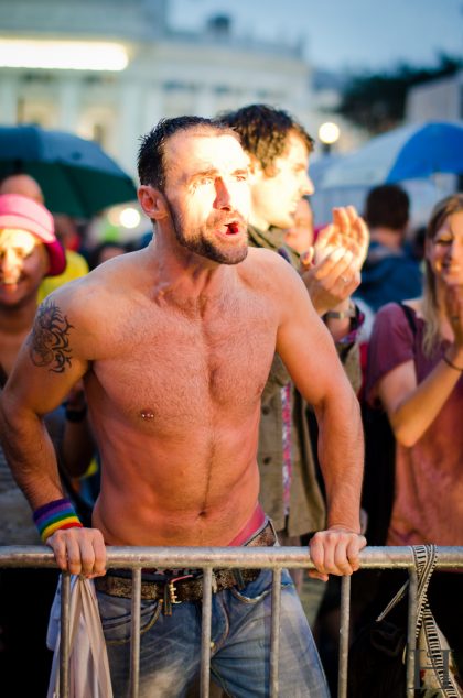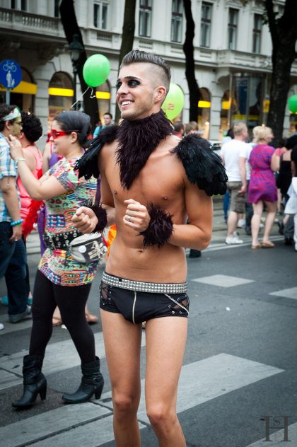 On Saturday Vienna was full of colorful people because of Vienna Pride 2011. The parade’s route was leading around the Ring finishing at the Viennese town hall. It started raining during the parade but nonetheless people kept on partying and also stayed for the concerts at the final destination. My friend Al Axy (http://www.alaxymusic.com/) performed live on stage and took me backstage. That’s where I met Mave O’Rick a singer from Germany (http://www.maveorick.com/). After some backstage photos and warming up I went back outside where it was raining cats and dogs. The next stress-test for my new camera…