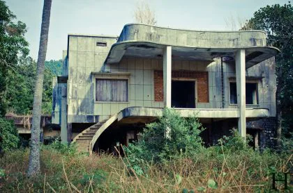 On the next day Martin and I went to the Old Casino, a hotel formerly used by rich Khmer and French people. During the bloody takeover of the Khmer Rouge in the 70s the place was destroyed and you can still see bullet holes in the walls as a result of heavy fighting. These days the so called Old Casino is being renovated as part of a huge building project in the middle of Bokor national park(!)… No comment…